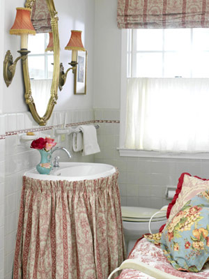 除了毛巾一類的必須品,很多人從來(lái)沒(méi)有想過(guò)進(jìn)一步裝飾他們的浴室,這就好比檢驗(yàn)室里只觀察得到瓦狀細(xì)胞那樣單調(diào)。不過(guò)幸運(yùn)的是,空白的背景可以和任何色彩搭配。比如在這個(gè)案例中,只用了雅致的紡織品和浪漫的鍍金梳妝鏡,就把小小的空間變成了一個(gè)迷人的“避難所”。