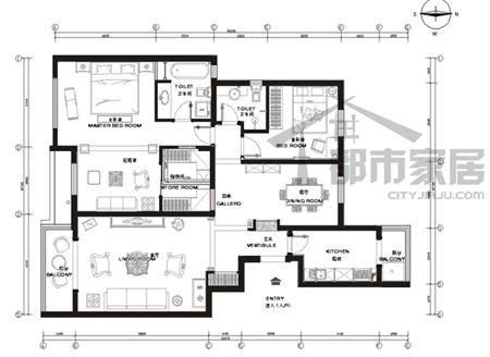 一 把書房劃入主臥,封住書房原來的門,并且把原來無法利用的過道利用起來作為儲物間。二 在客廳與門廳之間突出的一角做了儲物柜。三 入戶門正對餐廳,毫無遮蔽,這在風(fēng)水上來說是比較忌諱的。設(shè)計師在入戶門正對處增加了玄關(guān),既化解了不詳?shù)娘L(fēng)水,又具有收納功能。