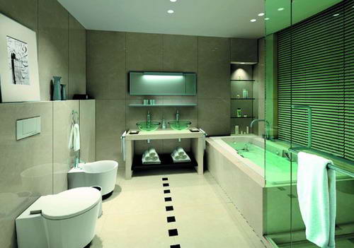 衛(wèi)生潔具的洗面器、座便器、浴缸或增加?jì)D洗器四大件的顏色必須一致,其檔次與衛(wèi)生間的地磚和墻磚色澤搭配要協(xié)調(diào)。一般衛(wèi)生間的潔具的色澤與地磚的色澤相近或略淺,面盆水嘴和浴缸三聯(lián)水嘴應(yīng)選擇同一品牌、同一款式才顯得比較協(xié)調(diào)。水嘴最好選擇單手柄陶瓷芯的,因?yàn)樘沾砷y芯的水嘴比橡膠芯的耐用,并且不漏水。