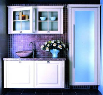 概要: 三柜合一的浴室家具 這套浴室家具尺寸并不大,但卻可以將衛(wèi)生間中常用的瑣碎之物——洗面乳、牙刷杯、剃須刀等都巧妙地隱藏在旁側(cè)高柜里,同時(shí)也可以將其他使用周期稍長(zhǎng)的洗滌清潔用品整齊地收藏在面盆下面的地柜中。加上整體的玻璃吊柜,可以拉伸出成倍的空間感。