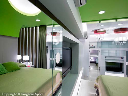 在有限空間里產(chǎn)生無限視覺延伸的秘決就是,可將房間的外墻以玻璃取代,以開放式的形態(tài)呈現(xiàn),透明的玻璃讓視覺無障礙穿透空間無形中便寬敞了起來,視覺自然有寬廣的享受。