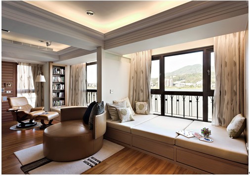 床頭運用了印花卷簾的設(shè)計,兼顧美感的同時也穩(wěn)定了睡眠的質(zhì)量,衣柜部份頂天的柜體,各類物品輕易分門別類。透過線板的造型,在壁面上設(shè)計出簡約的華麗美感,讓臥室有了低調(diào)的質(zhì)感。
