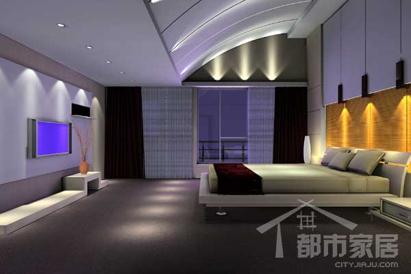 臥室內(nèi)本有一個挑高很大的尖形房頂存在,完全可以再做出一個閣樓,但業(yè)主表示不需要房屋內(nèi)再有房間,就取消了搭建閣樓的打算。設計師在床上方設計了一個柔和的弧型吊頂,躺在床上直視吊頂能讓房間使人倍感親切。沿吊頂弧度設計的射燈更增加了吊頂?shù)膶哟胃小?/FONT>