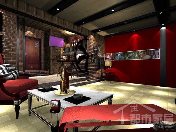 男主人對酒吧文化頗有興趣。設計師把地下一層的會客區(qū)完全做成了一個酒吧的效果,所有墻面都用磚塊重新壘砌。有朋友來做客,在這里完全能夠享受到酒吧的氛圍。是一處聊天、看球、暢飲的好處所。