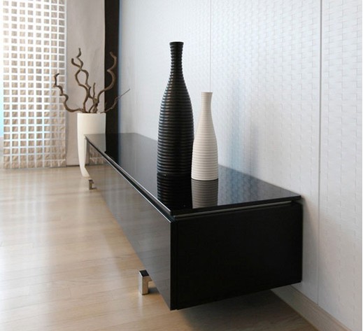 線條優(yōu)美的陶瓷圓形花瓶透出一種柔和的元素,同時也給花瓶設(shè)計加入了另一層設(shè)計元素。矮柜一角的白色盆栽放置著不規(guī)則的樹枝裝飾,也為室內(nèi)的線條設(shè)計增添了一份味道。