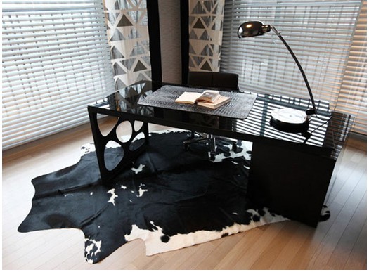 乳?;y地毯的黑白色和全屋裝修主題保持一致,淡咖啡色的地板為黑白陪添加了中庸的元素。書桌腳靠窗一面的鏤空設(shè)計,不僅節(jié)省了家居生產(chǎn)的成本,弧形線條還能和室內(nèi)的直線,三角形線條相配合,給人以視覺的沖擊力。