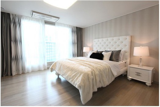 時尚現(xiàn)代的空間內(nèi)擺放白色沙發(fā)、黑色地毯,白與黑的經(jīng)典搭配,在杏色窗簾的柔和過度中散發(fā)著家的溫馨。淡黃色的吊頂讓人更容易放松心情,卸去一天的疲憊。深咖啡色的應(yīng)用,讓白、黑、杏色之間有一個更好的和諧過度。