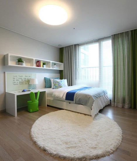 兒童房設(shè)計可謂是真正的清新淡雅,室內(nèi)色彩的點綴可增強兒童的想象力。充足的室內(nèi)光線是保證兒童眼部健康的首要元素,采光良好的落地玻璃窗能很好的吸取陽光,而跳眼的綠色加入是為了保護(hù)兒童的視力,可以舒緩兒童眼部的壓力。藍(lán)色的加入調(diào)和室內(nèi)色彩,增加小清新元素。