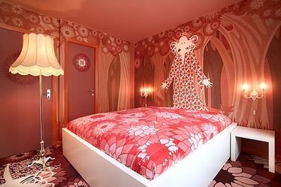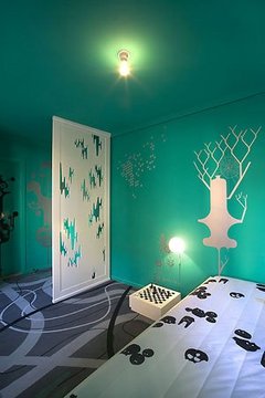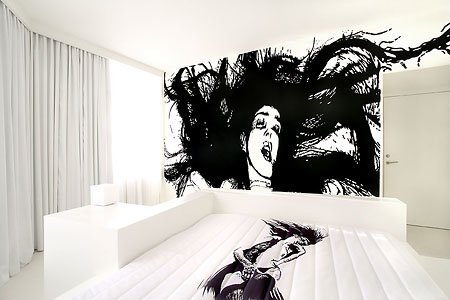 于零五年四月開幕的HotelFox,位于丹麥?zhǔn)锥几绫竟?,它的出現(xiàn)震撼了酒店及涂鴉藝術(shù)界。該酒店邀請(qǐng)了全球十三個(gè)國家,共二十一位著名涂鴉藝術(shù)家、插畫設(shè)計(jì)師,把原本三星級(jí)的舊酒店改頭換面,六十一個(gè)房間配以六十一種不同的裝飾設(shè)計(jì),不再是獨(dú)沽一味,充滿年輕活潑感覺。