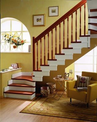 概要: 樓梯裝修在復(fù)式房的設(shè)計(jì)中,樓梯是一個很關(guān)鍵的作用,畢竟是繼前承后,連上接下才對,所以在設(shè)計(jì)的是有應(yīng)該從整體的空間過渡和安全的角度來考慮。 在家居中,樓梯主要有下面幾種: 1。直梯 現(xiàn)在已經(jīng)很少見了。因?yàn)檎加锰嗟目臻g?! ?。弧梯 現(xiàn)在還有一些復(fù)式房用這種設(shè)計(jì),但這種設(shè)計(jì)只適合大型的復(fù)式房?! ?。折梯 多數(shù)復(fù)式房的設(shè)計(jì)?! ?。