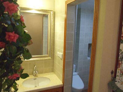 看清楚了,原來這里面是一個衛(wèi)生間,據(jù)主人講,原來這里是一面墻,光線和結構都非常不好,于是充分發(fā)揮他的聰明才智,又是請教師傅,又是上網(wǎng)查資料,方案做了一個又一個,最后決定把墻做成了窗欞的樣子,這樣既好看又光線通透,這實在是太有創(chuàng)意了,廣大正奮戰(zhàn)的裝修一線的網(wǎng)友不妨偷學這一招,絕對有意想不到的效果。