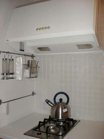 灶臺處的擺設(shè),在灶臺旁邊的墻壁上安裝了放各種調(diào)味瓶的架子,這樣瓶瓶罐罐就可以放在旁邊的架子上,而不占用臺面空間,同時使臺面變得整潔而易于打理。