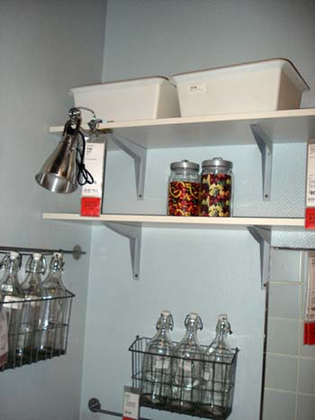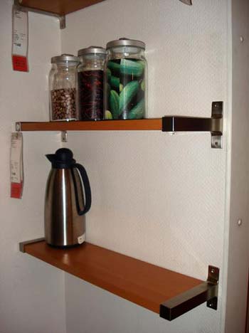 兩面墻上都裝有隔板,充分利用墻面空間。