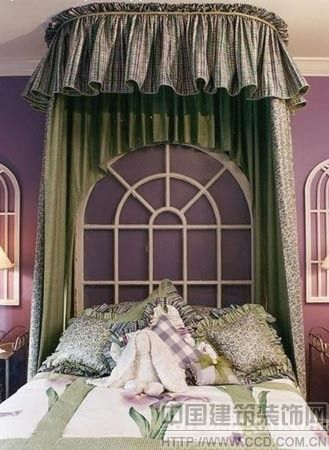 就一般床的構(gòu)造而言,床頭的高度欠缺氣 勢。因此,對床頭的那面墻有必要進行特別的裝飾,如用地板類" title="" target="_blank">板材或裝飾布等,裝飾出幾平方米的面 積;此外,用紡織面料制作的床頭的床幔,好似人的頭飾,大有可為,如用窗簾布垂掛、對 開等造型,猶如給床戴上了花頭巾。