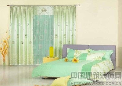 臥室中既然以床為中心了,其它飾物一般就應(yīng)有“退居二線”的襯托意識。如窗簾,面積較大,太艷、太豪華了,就會與床飾形成兩個“中心”,以至讓人眼花繚亂。故窗簾應(yīng)選用相應(yīng)一點兒的色彩、圖案、面料,像一個“仆人”站在床邊