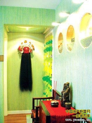 玄關(guān)的墻面往往與人的視距很近,常只作為背景烘托。因此,我們應(yīng)該把握的原則是:重在點(diǎn)綴達(dá)意,切忌堆砌重復(fù),且色彩不宜過多。