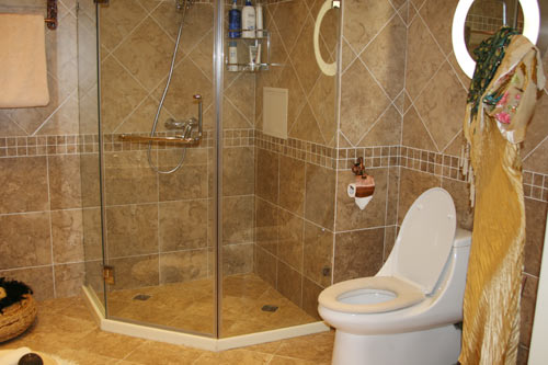 比如在衛(wèi)生間貼瓷磚的時(shí)候人們總希望做個(gè)腰線,這樣會(huì)比較好看??墒茄€往往是很貴的,其實(shí)開動(dòng)腦筋,換種思路也能夠起到同樣的效果。可以把衛(wèi)生間進(jìn)門的主視角那個(gè)位置的瓷磚換成別的顏色,例如黑色、金色等,這樣也能突出整面墻的跳躍效果,還省下了不少錢。