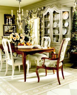 餐桌與座椅的巧妙組合,讓您在大城市中體會(huì)鄉(xiāng)村田園的閑逸生活。英美經(jīng)典元素的相互映襯,恰到好處地烘托出正式而有情調(diào)的氛圍。若與時(shí)尚類套系的家具搭配,則在表現(xiàn)現(xiàn)代時(shí)尚的同時(shí),更增添了幾分高雅的品位。