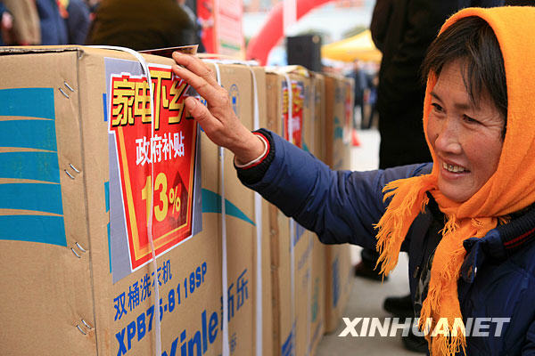 概要: 農(nóng)民在家電下鄉(xiāng)中購買彩電、冰箱等產(chǎn)品,將得到銷售價格13%的財政直補(bǔ)。2月1日,江蘇省“家電下鄉(xiāng)”工作正式啟動。江蘇省興化市戴南鎮(zhèn)的王巧云來到鎮(zhèn)上的“家電下鄉(xiāng)”直營店選購洗衣機(jī)。