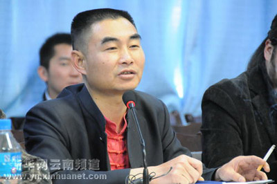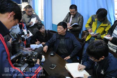 介紹會結(jié)束后媒體“包圍”了晉寧縣公安局長。(新華社記者 王研 攝)