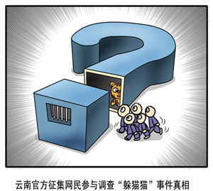 隨著“躲貓貓”一詞在網(wǎng)絡(luò)上日漸流行,網(wǎng)友相互間問候、戲謔也有了新說法:“今天你躲貓貓了嗎?”“你再這樣,小心我讓你躲貓貓!”針對“躲貓貓”致人死亡的事件,網(wǎng)友及社會人士代表組成的調(diào)查委員會20日開始調(diào)查,記者也成為委員會成員之一。調(diào)查委員會最終未能接觸到核心人證物證,因此雖然7000余字的調(diào)查報告已經(jīng)公布,但廣大網(wǎng)民心中仍有不少疑問。