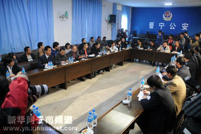 在晉寧縣公安局,調(diào)查委員會聽取警方、檢方的介紹,有大批媒體采訪。新華社記者 王研 攝