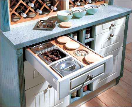 概要: 購(gòu)置櫥柜時(shí),除了要考慮板、臺(tái)面的材質(zhì),自家廚房的格局,還要考量一下是否要在櫥柜中添置一些比較流行的配件,讓自己的廚房不至于在幾年之內(nèi)就落伍了。細(xì)節(jié)體現(xiàn)時(shí)尚,就讓這些細(xì)節(jié)讓你的廚房青春永駐,時(shí)尚永駐。支招:時(shí)尚整體櫥柜的保鮮秘笈(圖) 1。抽屜分隔框 抽屜中使用儲(chǔ)物罐分隔配件,不僅可以容納6個(gè)儲(chǔ)物罐,讓它們各就其位,同時(shí)也有足夠的空間分類(lèi)放置其他物品。