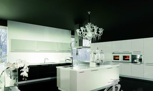 櫥柜的外形采用非?,F(xiàn)代的暗影玻璃門(mén)板和弧形煙機(jī),這種造型的制作工藝復(fù)雜,所以視覺(jué)效果很不一般。玻璃柜門(mén)的內(nèi)框可以透過(guò)光線,推開(kāi)寬大的玻璃柜門(mén),就像把一方澄澈的天空擎在頭頂。
