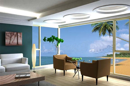白色的落地讓海邊的風(fēng)景一覽無余,乳白色的地板更給人一清新自然的風(fēng)情!