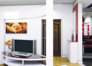 這間房屋的主人是一對(duì)即將結(jié)婚的年輕夫婦,在對(duì)房屋設(shè)計(jì)的要求上希望能夠脫離以往新房裝修時(shí)大紅大紫的常見(jiàn)做法,因此我采用了冷色調(diào)處理,讓他們能夠擁有自己獨(dú)特的風(fēng)格。經(jīng)過(guò)我進(jìn)行實(shí)際度尺后,首先感覺(jué)到房屋的客廳不大,門(mén)多。于是我重新建了一個(gè)實(shí)用的多功能廳,盡量在不大的空間內(nèi)實(shí)現(xiàn)更多的功能,而且輕快時(shí)尚的居家氛圍也更適合時(shí)下的年輕人,并在滿(mǎn)足過(guò)道通暢的基礎(chǔ)上重新定位了電視背景隔斷,廚房特意做成了開(kāi)放式的。在這套設(shè)計(jì)當(dāng)中,保證過(guò)道的流暢是設(shè)計(jì)的關(guān)鍵,所以我盡量地拓展視線(xiàn),通過(guò)半開(kāi)放的隔斷和弧線(xiàn)造型來(lái)滿(mǎn)足通暢的要求。