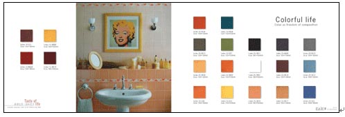 以上是專業(yè)人士專業(yè)的分析與預(yù)測(cè),翻譯成普通消費(fèi)者更容易理解的意思就是:2006-2007潮流色是黑白經(jīng)典與中間色當(dāng)?shù)?。在布局區(qū)域大膽地選用個(gè)性涂料顏色之外,在選擇家俱的配色上多以美式風(fēng)格的中間色家俱為主。在選擇瓷磚時(shí),EASE-SAPHIR的“色彩誘惑”和“凡爾賽”系列一個(gè)色彩張揚(yáng),一個(gè)色彩以過渡色的含蓄為主,剛好把他們分別選用到不同空間。