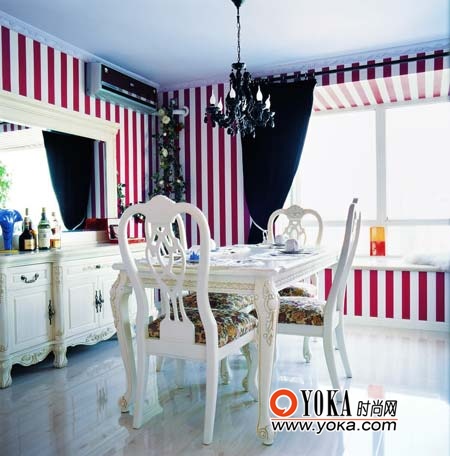 餐廳是吉米很喜歡的地方,粉色和白色條紋搭配很甜美。過去吉米吃飯是能湊合就湊合,但是現(xiàn)在,吉米覺得吃飯一定要有個餐桌,餐桌上一定要有盞吊燈,這是一種滿足,這種感覺才真正像一個家。