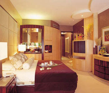 總統(tǒng)套房面積共有435平方米,異域風味濃厚的內(nèi)部設計采用了傳統(tǒng)的胡桃木、皮草、天然纖維制品和意大利大理石等材料,與現(xiàn)代原創(chuàng)藝術作品及等離子電視等時尚元素完美結合,并且配有家庭影院設備、高級音響,傳真機、筆記本電腦和兩套帶有小電視的極可意水流按摩浴缸。入住太陽總統(tǒng)套房即可享受豪華閣待遇,例如在豪華閣酒廊辦理快捷入住和退房手續(xù)、每日免費早餐、免費上網(wǎng)、使用會客廳、享用專屬健身俱樂部和室內(nèi)游泳池等等。
