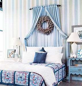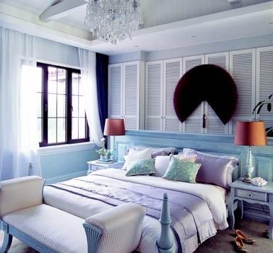 現(xiàn)代的都市人,生活在鋼筋水泥之中。每天面對(duì)汽車,電腦,還有緊張的工作與應(yīng)酬!心里得不到片刻的寧?kù)o。人們向往那種藍(lán)天,碧海的環(huán)境,憧憬自由,浪漫與輕松的生活方式。這正是地中海風(fēng)格的裝潢,像這個(gè)臥室的裝潢,墻壁選擇浪漫的藍(lán)色,讓人感覺走進(jìn)了大自然,心情也格外的舒暢。