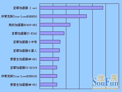 根據(jù)搜房家電口碑榜的統(tǒng)計,本周關(guān)注度排名前十的加濕器有: