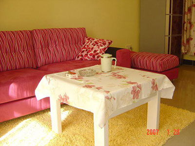概要: 好容易等到單位分了房,結果只分了兩個單間,只好私自打通。盡管不是屬于自己買的房子,也毅然決然的裝修了小小的一番。曬曬我們自己設計,看看我們裝修的火熱幸福小窩,大家給點意見吧。 客廳部分,房主家管事的非常喜歡這套沙發(fā)^_^40平米小窩的幸福生活 這是餐廳部分,本來這有一堵墻,還是帶門帶窗的,難看死了,所以偷偷打通了,這樣一弄還挺有感覺的呢。