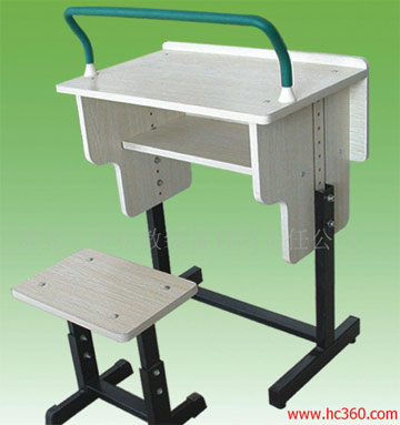 這種防近視課桌椅是由靠背、三角形軟座板、上端與座板聯(lián)接下端與桌支腳聯(lián)接的可調(diào)節(jié)椅支腳構(gòu)成的椅子,并設(shè)置有文具盒的桌箱體、內(nèi)側(cè)邊沿有擋書(shū)揭蓋凸條的桌面、2個(gè)可調(diào)節(jié)桌支腳、課桌角度調(diào)節(jié)機(jī)構(gòu)和遠(yuǎn)近調(diào)節(jié)機(jī)構(gòu)構(gòu)成的課桌。防近視課桌椅可根據(jù)學(xué)生高矮胖瘦靈活調(diào)節(jié)桌椅高度、課桌傾斜度和與椅子的距離,預(yù)防近視,并使學(xué)生既能保持良好的坐姿、又不易疲勞,還能有效預(yù)防孩子腰椎彎曲