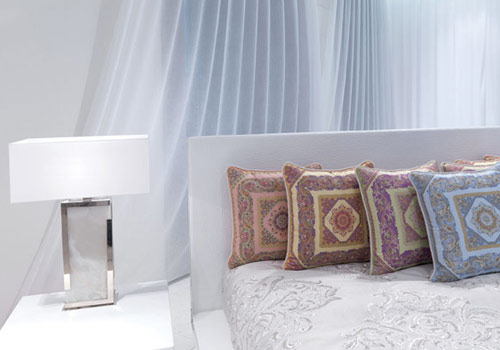 臺(tái)燈Marble使用明亮的鍍鉻材質(zhì)。提花靠墊的鮮艷色彩同整體的純白環(huán)境形成鮮明對(duì)比??繅|參考價(jià)格1500元起。