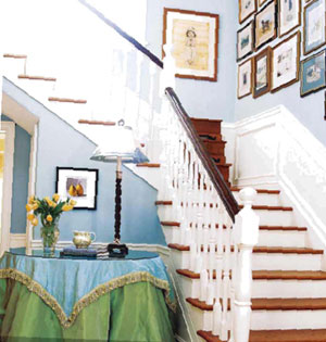 一組照片可以充實樓梯旁墻面的空白,注意要擺放緊湊,這樣容易產(chǎn)生整體感,每張照片的色彩和亮度要接近,照片也要與相框接近。