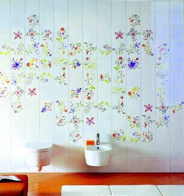 花草枝蔓洋溢著春天的色彩與芬芳,編織出一幅優(yōu)雅精細的藝術作品,仿佛賦予墻壁熾熱的生命,圖案組合多種多樣,環(huán)繞建筑構(gòu)件和潔具鋪貼,會顯得更有趣。