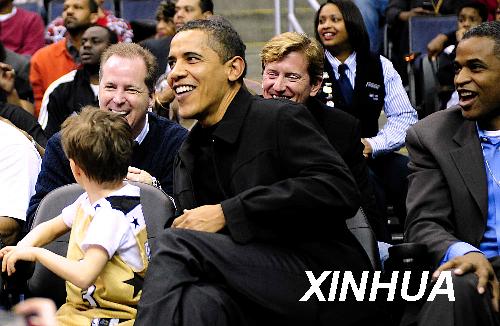 資料圖片:2月27日,美國總統(tǒng)奧巴馬(前中)在觀看比賽。當(dāng)日,美國總統(tǒng)奧巴馬來到華盛頓奇才隊(duì)主場觀看NBA常規(guī)賽華盛頓奇才隊(duì)與芝加哥公牛隊(duì)的比賽。 新華社記者張巖攝