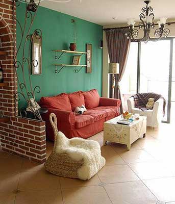 對(duì)比色具跳動(dòng)感,紅墻綠沙發(fā),強(qiáng)調(diào)了沙發(fā)的形狀,很跳但容易看膩,一般建議不能多用,只能使用在重點(diǎn)區(qū)域。