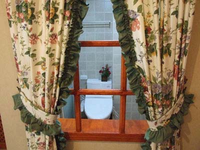 看清楚了,原來(lái)這里面是一個(gè)衛(wèi)生間,據(jù)“鄉(xiāng)村之戀”講,原來(lái)這里是一面墻,光線和結(jié)構(gòu)都非常不好,于是充分發(fā)揮他的聰明才智,又是請(qǐng)教師傅,又是上網(wǎng)查資料,方案做了一個(gè)又一個(gè),最后決定把墻做成了窗欞的樣子,這樣既好看又光線通透,這實(shí)在是太有創(chuàng)意了,廣大正奮戰(zhàn)的裝修一線的網(wǎng)友不妨偷學(xué)這一招,絕對(duì)有意想不到的效果。當(dāng)然,這也是鄉(xiāng)村之戀裝得最滿意的,還叫我們多拍一點(diǎn)照片呢!