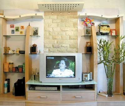 做一個現(xiàn)代博古架安裝在墻面上,強化墻面的裝飾作用。博古架形狀可以是傳統(tǒng)的,即多邊的、多變的;也可以是現(xiàn)代的,即邊線統(tǒng)一、拒絕變化(如圖)。當然里面擱置什么藝術(shù)品是關(guān)鍵。中心部分自然要放重量級的器物,不管是西式的,還是東方的,這都視自己擁有什么而定。無論自己是否擁有藝術(shù)品,中心位置不要置放塑料等非手工制品。博古架安置的方法很博物館化,能起到展覽、玩賞的目的。