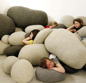 設(shè)計(jì)師Katarina von Wachenfeldt則設(shè)計(jì)了一款名叫“石頭”的枕頭,跟法國(guó)設(shè)計(jì)師Stéphanie Marin設(shè)計(jì)的“Living stone”(活石)抱枕,都從石頭那里獲得了靈感——這真是奇怪,最柔軟的枕頭偏偏要做成最堅(jiān)硬的石頭的形狀,這種反差,體現(xiàn)了西方式的幽默。或許設(shè)計(jì)師們認(rèn)為,抱著石頭入睡,更能讓人們體會(huì)到夢(mèng)境的柔軟吧。有人說(shuō),枕著石頭睡覺(jué)是人類(lèi)最原始的睡眠姿態(tài),如果真是這樣,那么“Living stone”就可以說(shuō)是對(duì)枕頭的復(fù)古了。