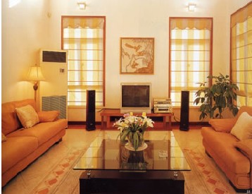 藤器、屏風(fēng)、熱帶植物,再加上深棕色的木制茶幾和具有熱帶島嶼風(fēng)景的掛畫(huà)、具有東方色彩的鑲玻璃掛飾,一個(gè)熱帶風(fēng)情的居室呈現(xiàn)在眼前。為了調(diào)和冷色調(diào)的房間,只要擺放了多個(gè)色彩鮮艷的靠枕就可以了。