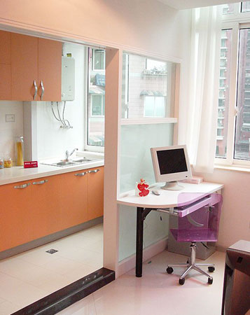 廚房的墻面裝飾也要結合燈光的色彩安排,因廚房操作時相對溫度較高,一般配以冷色為宜,如白色、淺黃色。此外廚房墻面的裝飾還要注意一點,就是裝飾材料要盡量耐臟,而且要易于清潔,這點是由廚房的特殊功能決定的。廚房的墻面裝飾不宜過多,它主要是通過廚房的基本設施來體現(xiàn)的,裝飾性也要服務于這些基本設施功能的需要?;敬毒叩暮侠頂[放、掛置,同時也是裝飾廚房墻面的重要因素,這樣才能達到較好的裝飾效果。