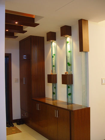 在家居風水中,中國的傳統(tǒng)大宅院入門之處均設有大型玄關,而現(xiàn)代都市的住宅普遍面積狹窄,若再設置傳統(tǒng)的大型玄關,則明顯會感覺空間局促,難以騰挪。所以折衷的辦法是用玻璃屏風來作間隔,這樣既可防止外氣從大門直沖入客廳,同時也可令狹窄的玄關不顯得太逼仄。