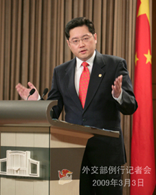 2009年3月3日,外交部發(fā)言人秦剛舉行例行記者會(huì),主要就圓明園文物拍賣、美國務(wù)院朝鮮問題特別代表博斯沃思訪華等答記者問。