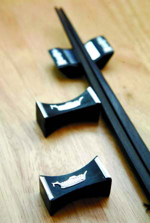 泰國的銀飾一向比較出名,這款筷托兩端有泰銀雕的人物造型,中間的凹槽部分則是銀片設(shè)計(jì),既有裝飾作用也非常實(shí)用,清洗起來也很方便。圖案多為泰國當(dāng)?shù)氐某S脠D案,代表了吉祥的寓意,比如船代表了一帆風(fēng)順。